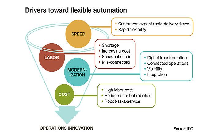Figure 1: Companies have many reasons for choosing flexible automation, including speed, labor, modernization, and cost.