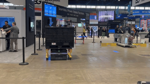 Image 3: OTTO’s AMRs on the show floor at ProMat 2025, demonstrating how manufacturers can create a competitive advantage by automating their material handling operations.