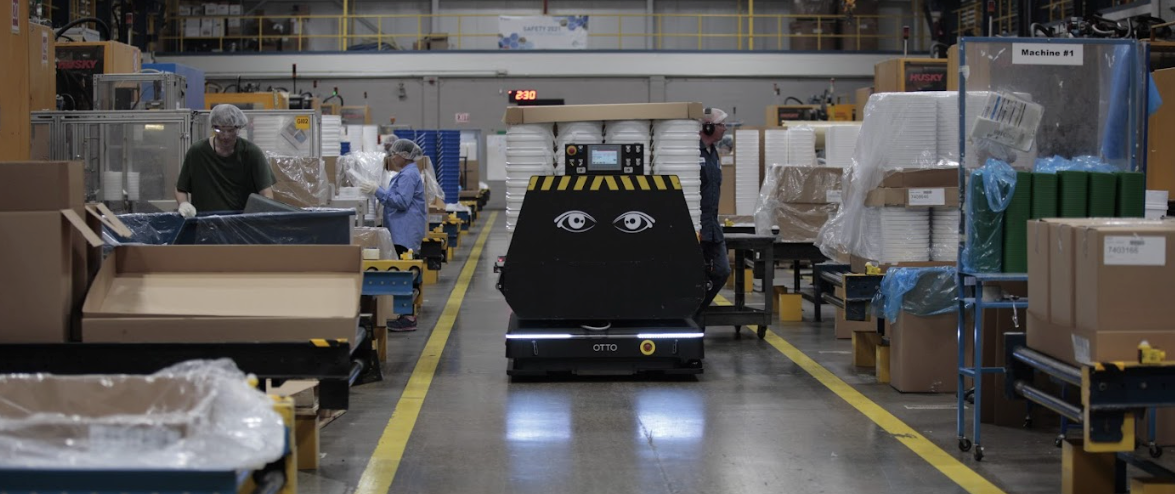 For example, plastic rigid container manufacturer, Mauser Packaging Solutions, implemented smart manufacturing technology—specifically AMRs—to help solve labor challenges at two of their facilities. By deploying OTTO AMRs to move finished goods to the stretch-wrapper, Mauser was able to re-allocate three laborers to higher value-added roles while generating a 6x throughput increase.
