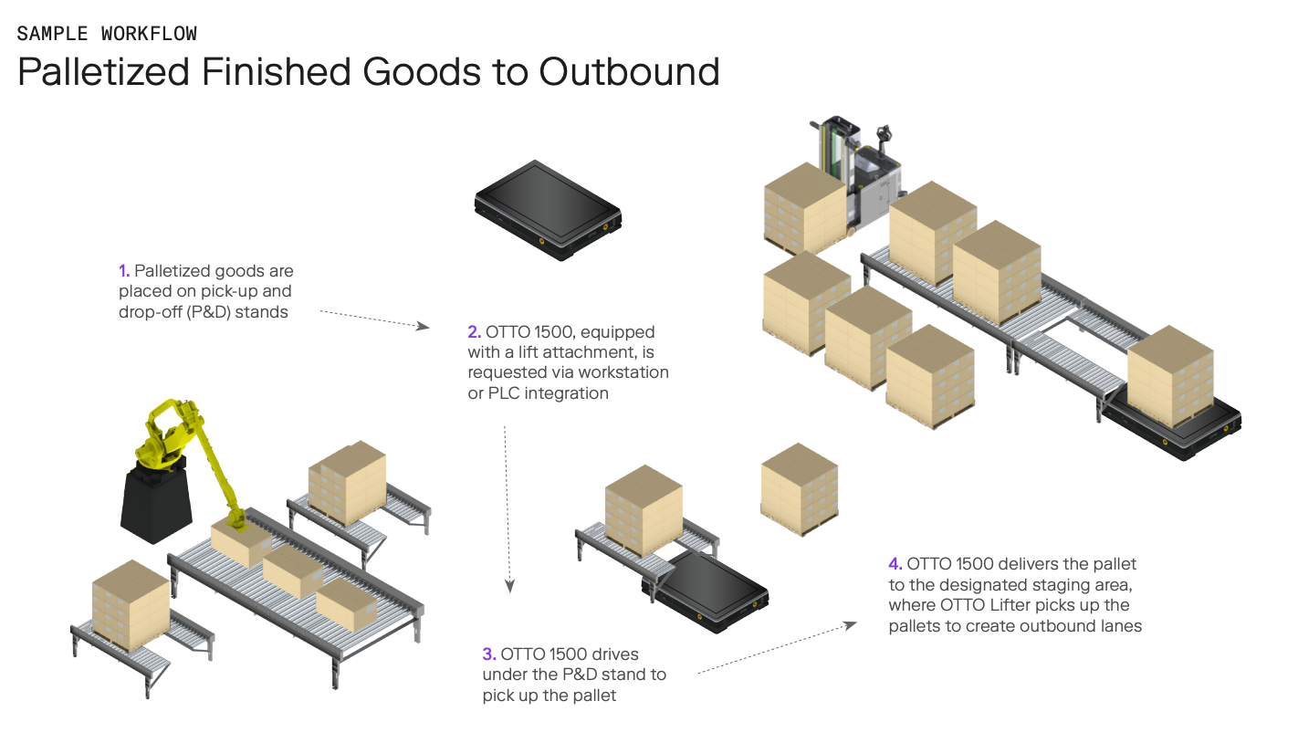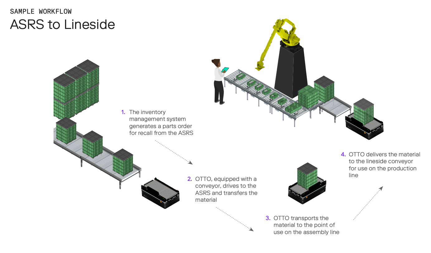 OTTO 1200 is built to automate many workflows, including ASRS to lineside, inbound to storage, and finished goods takeaway.