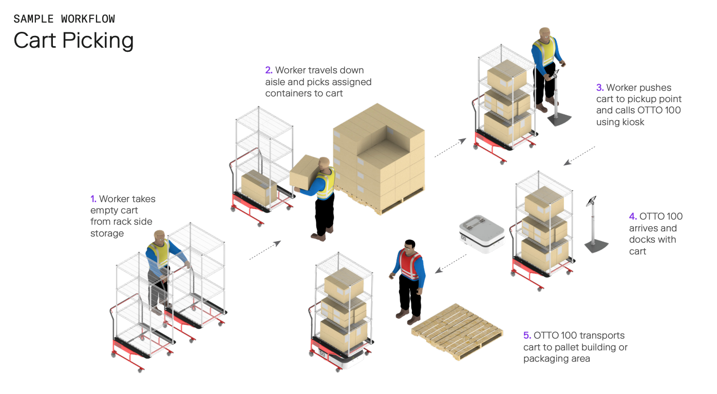 Image 1: A sample workflow for the OTTO 100 autonomous mobile robot.