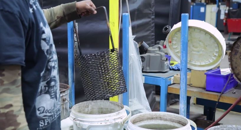 The first process that was automated within HIROTEC Group’s spare parts production was the black oxide process, which involves moving and dipping parts from bucket to bucket in a sequence, with specific time delays between each sequence as parts become oxidized to provide a corrosion resistant surface. Previously, the process was completed manually by whomever happened to be available from the shop floor - there was not a set operator on the line. As such, parts were prone to error and were often required to re-enter the process, significantly impacting productivity and throughput.