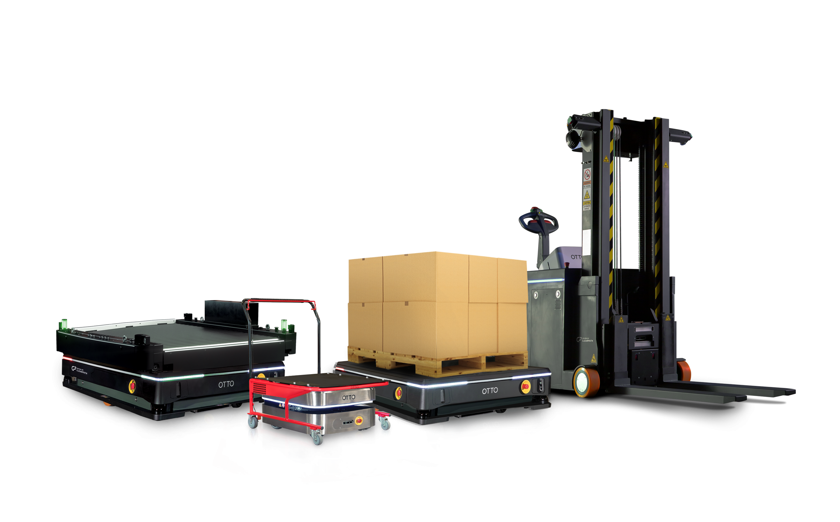 The OTTO AMR fleet of robots with safety sensors.